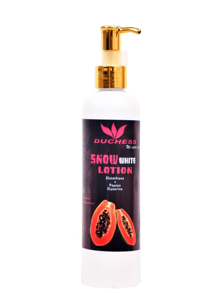 An intense whitening body lotion made with papaya extract. Extra-strong whitening lotion. Achieve a 6X whiter, fresher, unified radiant complexion with our Snow White Body Lotion.